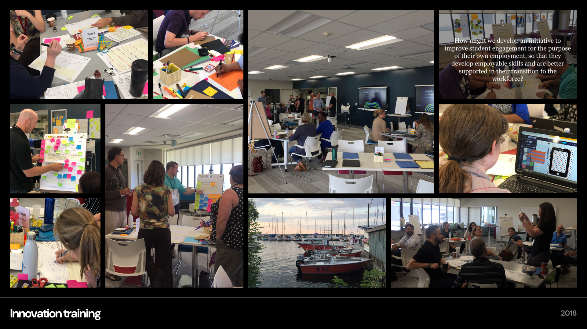 The innovation hub of a college of applied arts and technology wanted to help students develop the innovation skills required to be successful in the workforce. More specifically, they wanted to exemplify a culture of innovation by training a diverse set of faculty members to become “innovation champions”. I co-led a hands-on 2.5 day innovation training workshop at the college. My colleague and I worked with the organizers ahead of time to learn about their goals, timeline, and desired outcomes and we included them in the process to customize the workshop based on their needs. Together we decided to cover an end-to-end design process curriculum while also tackling a real problem in small groups. The training was extremely well received with 30-40 faculty members participating. Through surveys, it was reported that they enjoyed the hands-on element, noting that the design process was versatile enough to be applied across fields.