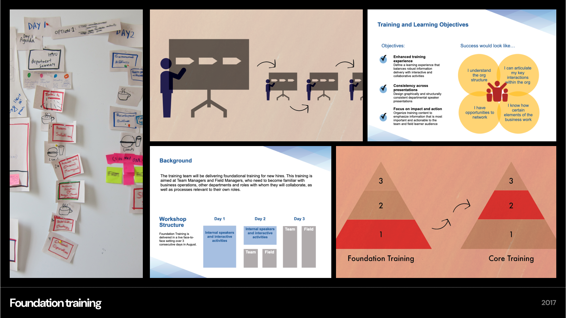 When joining a new company, training is a critical part of building job familiarity and confidence by learning about the organization structure, articulating key interactions within the organization, networking with other teams, and learning about how the business works. The commercial and training department of a large company was looking to develop a more engaging foundational training program. Previously, training consisted of many presentations delivered by department speakers across the organization. I was responsible for project scoping, writing the statement of work, team management, client management, and the visual production of new training materials. Working with two other team members, we developed a 3-day training experience that incorporated many customized interactive elements. The training managers received great response and praise for the level of engagement.