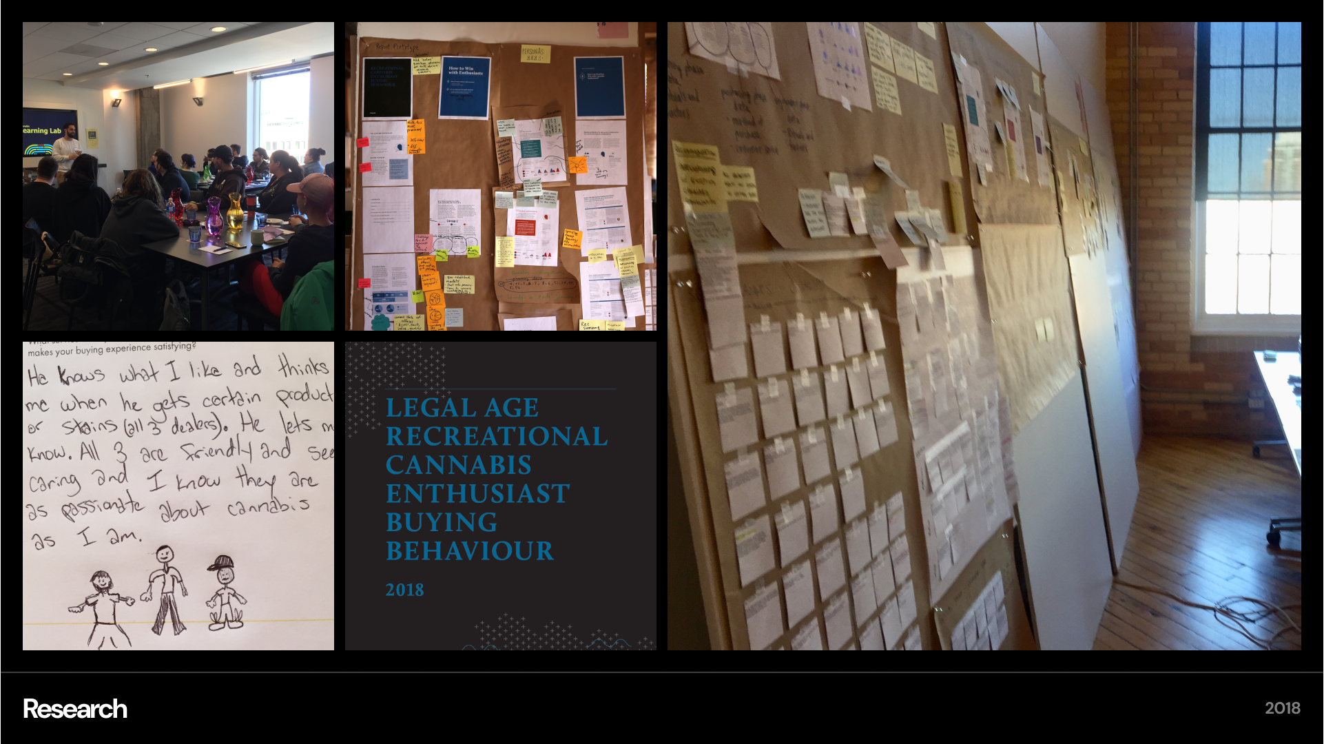 Cannabis was legalized in Canada in October 2018. Prior to that date, there was a great deal of uncertainty as to whether existing cannabis consumers would convert from the black market to the legal recreational market. Legal aged cannabis enthusiasts (those who consumed at least daily) accounted for up to 70% of consumption by weight, yet there were many barriers preventing cannabis enthusiasts from making the switch to the legal market. An initial study to understand why was conducted in Toronto. I then co-led a research project that would extend this research across Canada. Four in-person sessions were conducted in Halifax, Winnipeg, Calgary, and Vancouver with cannabis enthusiasts to understand their planning, purchasing, and enjoyment rituals. In each session, participants completed a series of templated activities and group discussions on factors used to assess quality and gather their opinions on product communications and online shopping needs. The outcome was an updated insights report used to educate large cannabis retailers across Canada on what barriers may exist for enthusiasts when transitioning into the legal recreational market.