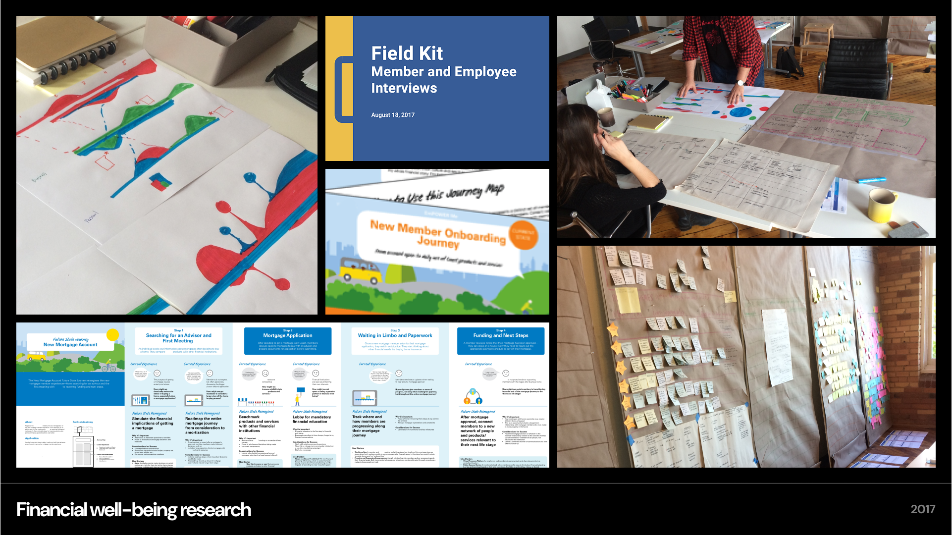 Credit unions are similar to commercial banks in terms of services except that they operate on a cooperative model where members all have a stake in the company and get to vote on decisions. Focusing on member and employee experience provides a competitive edge as credit unions often lose ground in areas of residential mortgages and business offerings. A large credit union sought to understand how members and employees perceived banking and what the definition of financial well-being meant to them, beyond wealth. I led a research workstream to map out current and future state experiences of financial members, and identified opportunities to improve those experiences. I prepared training materials for internal employees to conduct semi-structured interviews and ran a digital diary study. I also facilitated client and member facing workshops including a kick-off, co-creation, and iteration labs to identify constraints preventing financial well-being. The final deliverable included eight journey maps across four customer segments that were used to support decision-making for future initiatives, giving a voice to end users. They were also used as input for a broader workstream to develop a strategic framework.